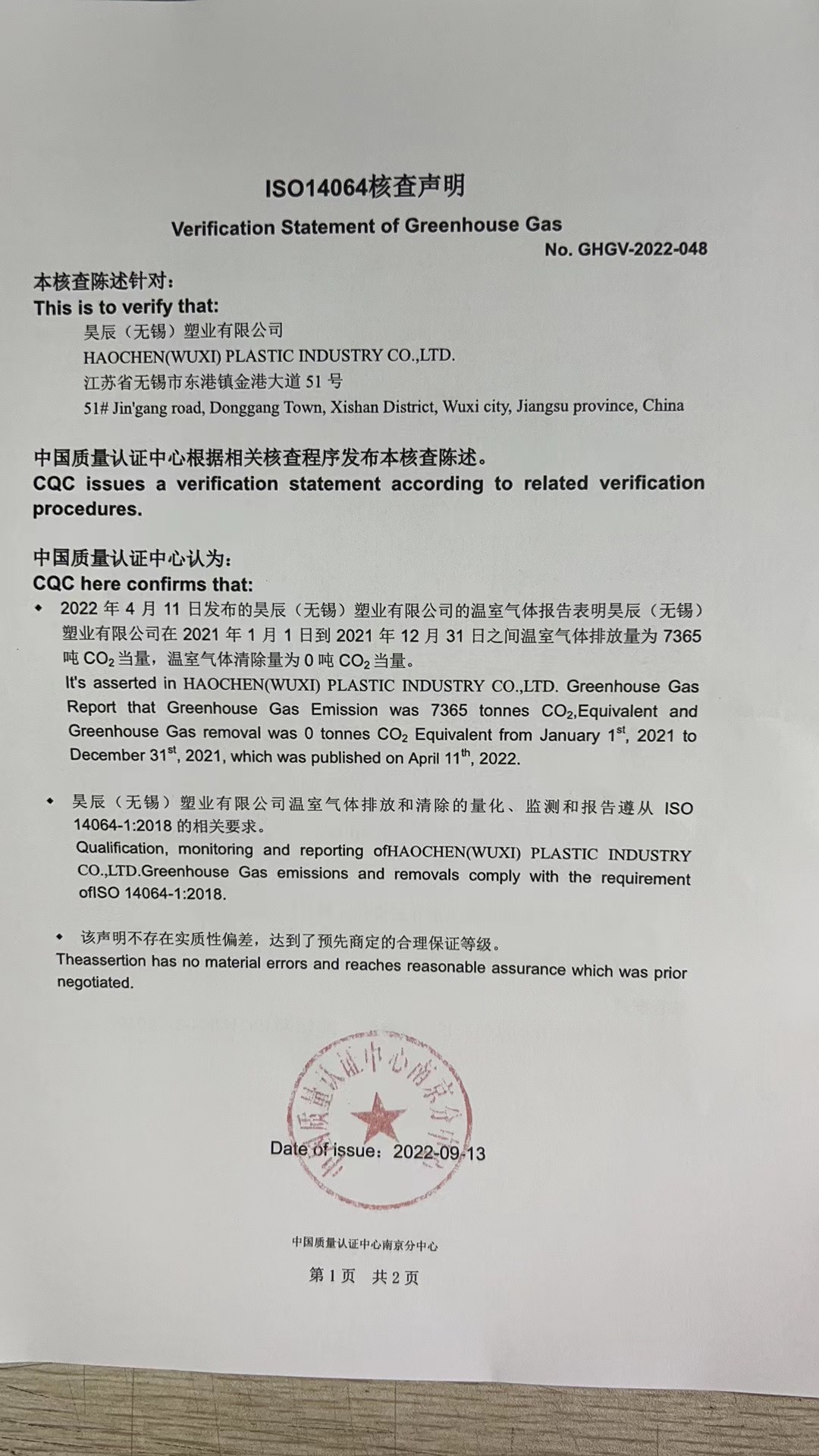 - 溫室氣體第三方核查公示